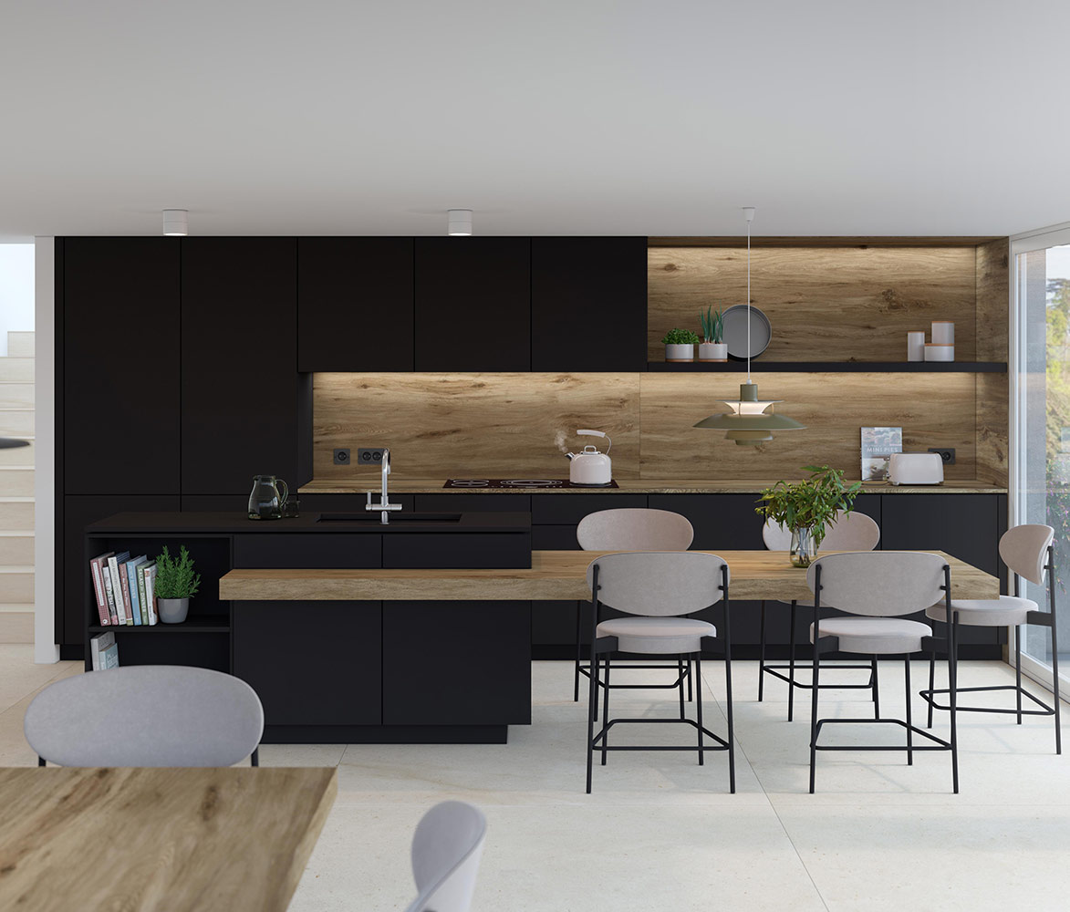 The quality of the graphics allows for the exact recreation of the grains and texture of the wood. Its resistance and versatility have made it one of the most demanded materials for contract projects.